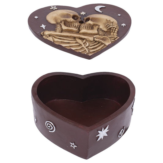 Fujima Skeleton Love Heart-Shaped Polyresin Stash Box - 5.3"x4.7"